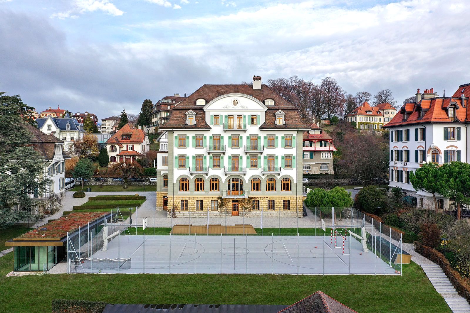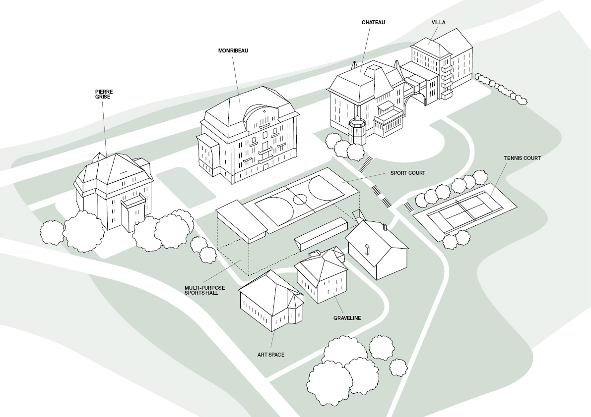 学校坐落在洛桑市中心,俯瞰日内瓦湖和瑞士阿尔卑斯山,地理位置优越,环境优美。